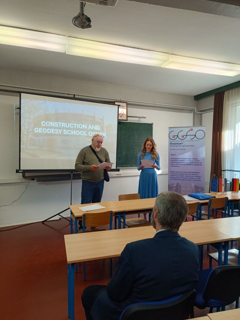 Dana 24. studenoga 2025. imali smo čast ugostiti dr. phil. Jana Tesara, nastavnika engleskog jezika i povijesti te Erasmus koordinatora iz graditeljske škole SPŠ stavební Josefa Gočara iz Praga. Njegov posjet bio je dio Erasmus aktivnosti preparatory visit, usmjerene na upoznavanje naše škole, Erasmus tima i radnog okruženja te dogovor oko buduće suradnje i partnerstva između naših institucija.